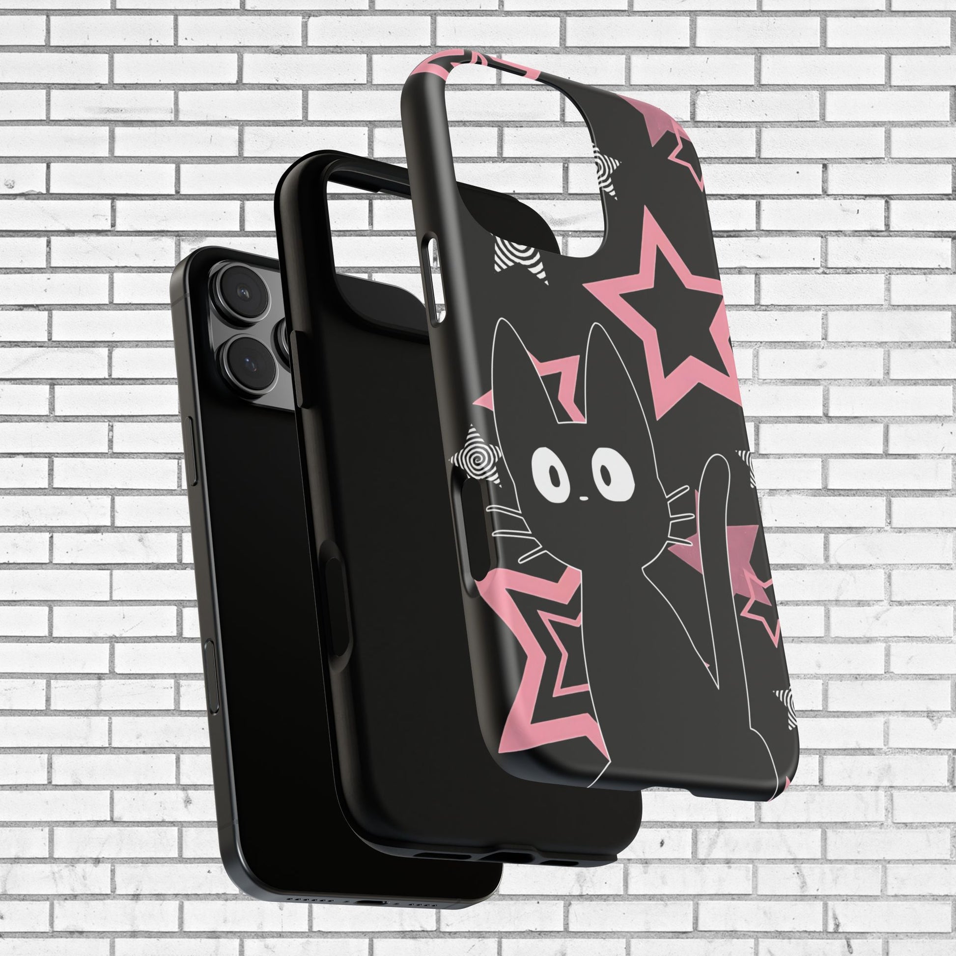 Add a touch of magic to your everyday look with this cute black cat phone case, inspired by dreamy night skies, stars, and kawaii pastel goth aesthetics. Featuring an adorable cat illustration with playful stars, this case is perfect for cat lovers and anyone who loves cozy, whimsical designs.