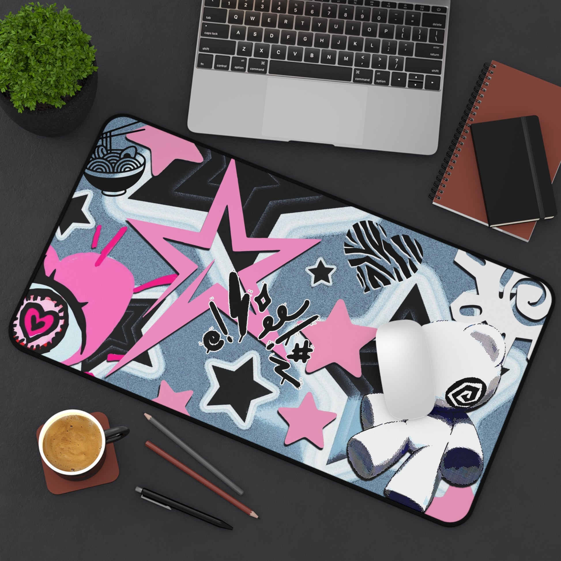 Kawaii Punk Mousepad - Pink Star Aesthetic Gaming Desk Mat